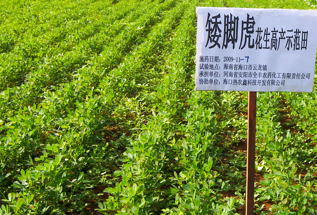 (1)施肥:苗期對氮、磷等營養(yǎng)元素吸收不多,但是團棵期,由于植株生長明顯加快,而種子中帶來的營養(yǎng)已基本耗盡,根瘤尚未形成。因此,苗期適當(dāng)增施N和P能促進根瘤的發(fā)育,有利于根瘤菌固氮,顯著促進花芽分化數(shù)量,增加有效花數(shù)。建議在此時,結(jié)合花生需肥規(guī)律,葉面噴施硝酸鈣和磷酸二氮鉀,同時配合選擇使用復(fù)硝酚鈉、胺鮮酯DA-6、蕓苔素內(nèi)酯、三十烷醇、矮壯素、縮節(jié)胺等一種或兩種調(diào)節(jié)劑,促根增葉,培育壯苗。