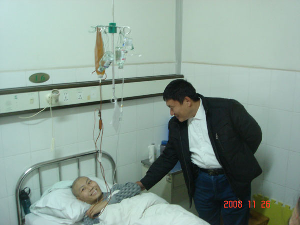 劉小龍,一個(gè)20歲的年輕小伙子,曾經(jīng)在公司車(chē)間工作。一個(gè)風(fēng)華正茂的年齡一個(gè)正是爭(zhēng)取自由的年齡,一個(gè)積極上進(jìn)勤奮好學(xué)的小伙子,不幸卻在今年八月中旬被檢查出得了白血病。多么令人可怕的字眼,多么令人討厭的病痛,但不幸確確實(shí)實(shí)在我們身邊發(fā)生了。病痛一天天在折磨他、在打擊他,拍片、輸血、輸液、化療......,父母的勞累自不必說(shuō),巨額醫(yī)療費(fèi)用也讓這個(gè)家庭難以承擔(dān)。24日晚全豐公司董事長(zhǎng)王志國(guó)及工會(huì)主席陳志靜攜公司其他成員一行六人專(zhuān)程去醫(yī)院探望了劉小龍及其家人,這些情況全豐公司的領(lǐng)導(dǎo)看在眼里急在心里,看到自己的兄弟在忍受痛苦,領(lǐng)導(dǎo)們的心情非常沉重。