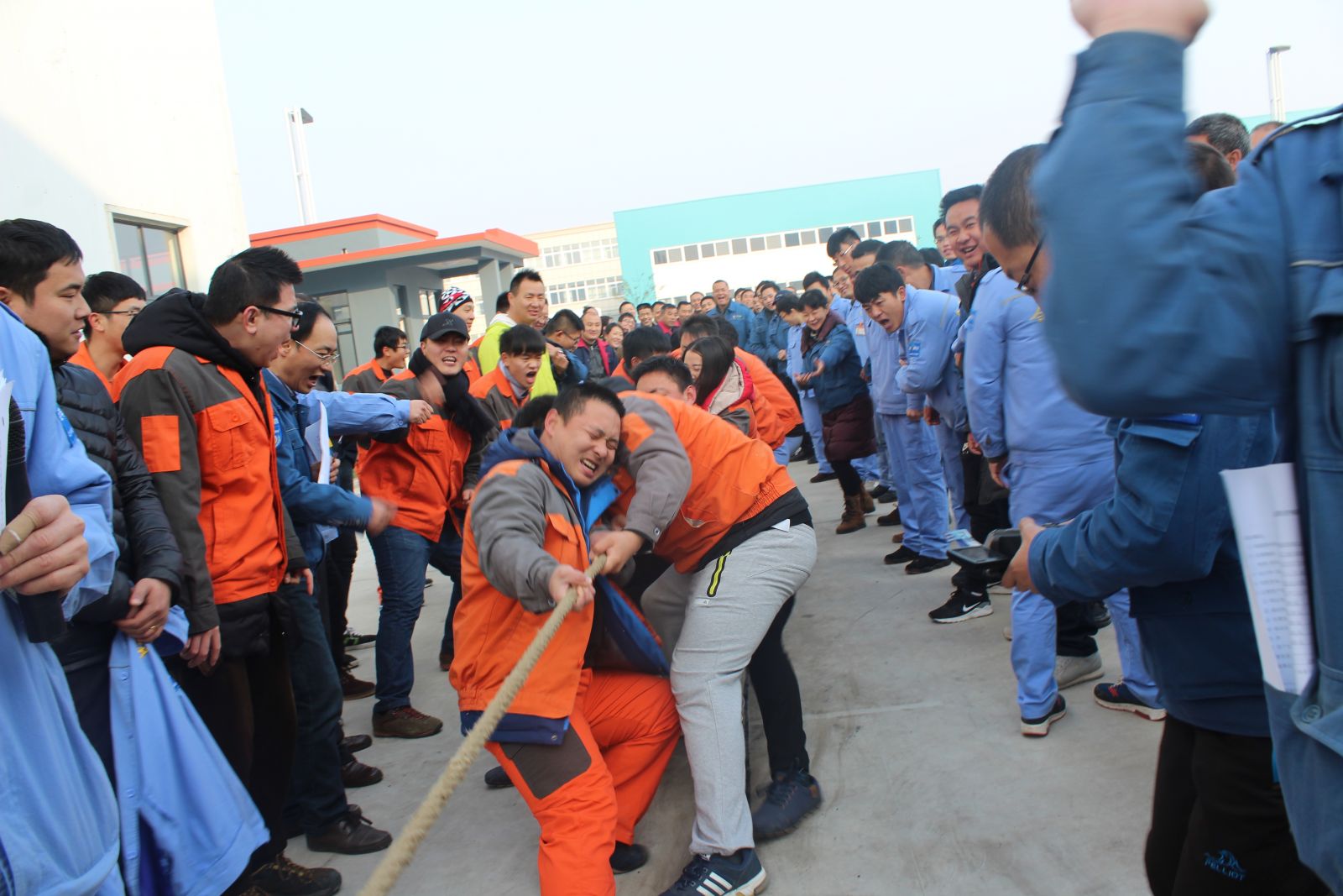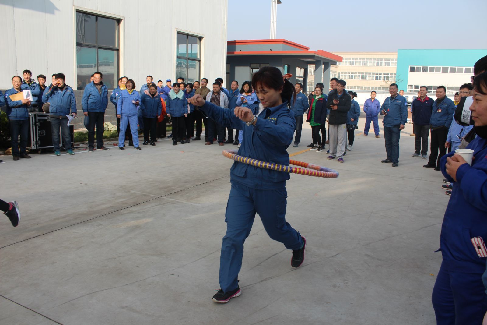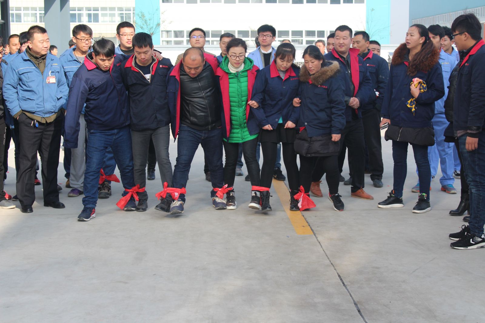 今天公司特地為大家安排了拔河比賽、齊心跳大繩、袋鼠跳、托乒乓球接力賽、背球接力賽、呼啦圈競走、綁腿賽跑共計七項豐富多彩的文體盛宴。