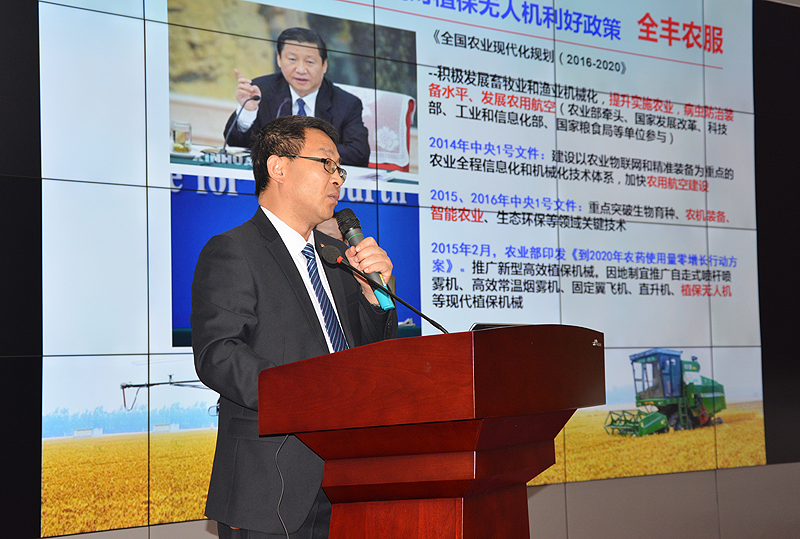 安陽全豐航空植??偨?jīng)理周國強,做了《淺談我國植保無人機的現(xiàn)狀與應(yīng)用》主題匯報,系統(tǒng)介紹了我國航空植保產(chǎn)業(yè)的發(fā)展現(xiàn)狀、植保無人機的應(yīng)用情況、以及對我國航空植保行業(yè)發(fā)展前景的展望。
