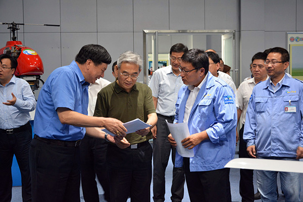 9月8日,農業(yè)部副部長張?zhí)伊?、農業(yè)部漁業(yè)漁政局副局長韓旭、農業(yè)部農業(yè)機械化管理司處長范學民、農業(yè)部辦公廳副處長王勝、省農業(yè)廳副廳長楊海蛟、省農業(yè)機械管理局副巡視員程雙進等一行領導,在安陽市市委書記李公樂、安陽市常務副市長陳志偉、副市長劉建發(fā)、田海濤、北關區(qū)委書記程利軍及劉學平、王正茂、孫立新等其他區(qū)領導的陪同下蒞臨安陽全豐航空植??萍脊煞萦邢薰菊{研。安陽全豐航空董事長王志國、華南農業(yè)大學教授蘭玉彬陪同張?zhí)伊指辈块L等領導對無人機生產標準、檢測標準及農用無人機的發(fā)展進行匯報。張部長一行對全豐作為農用無人機先行者持之以恒的努力給予了高度評價和肯定。