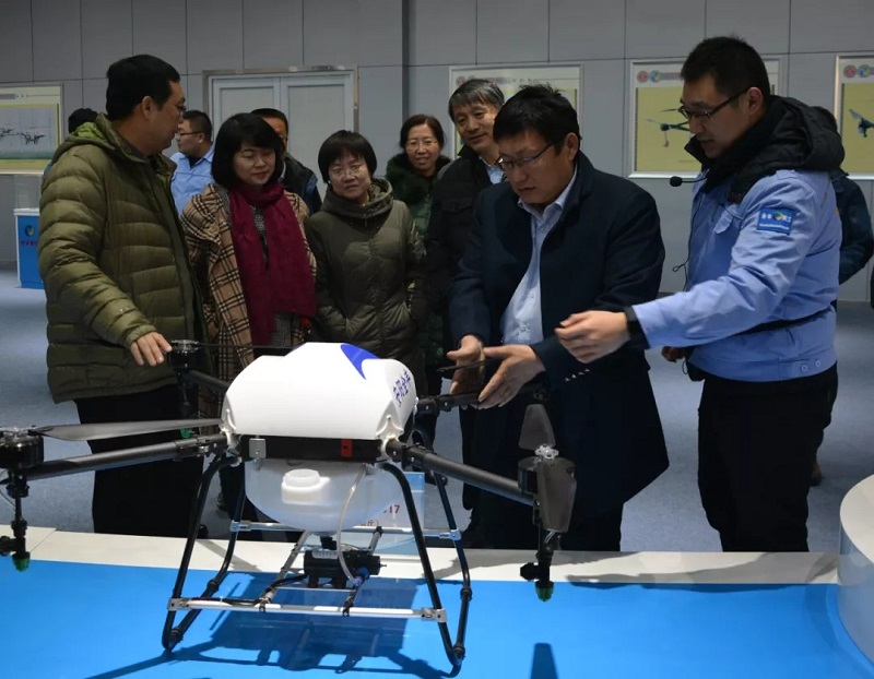 全豐董事長(zhǎng)王志國(guó)向各位領(lǐng)導(dǎo)專家等講解全豐自由鷹多旋翼無(wú)人機(jī)