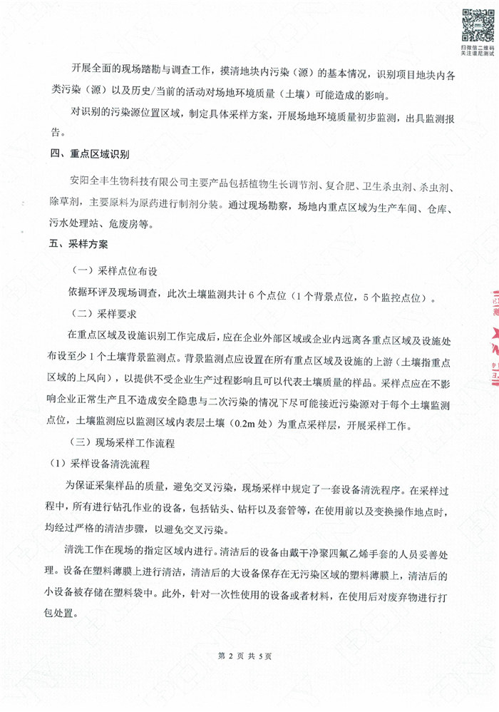 安陽全豐生物科技有限公司土壤自行監(jiān)測報(bào)告