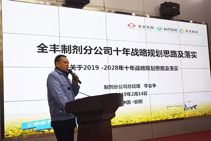 原藥公司王建國、制劑公司李會爭、航空植保張曉林、研發(fā)中心張朋飛等分別代表各自部門匯報(bào)了今后十年的發(fā)展規(guī)劃。