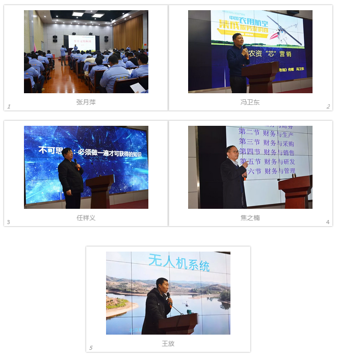 培訓(xùn)內(nèi)容豐富多彩,除了軍訓(xùn)外,以企業(yè)文化、營銷、技術(shù)和發(fā)展規(guī)劃為主。安陽全豐公司常務(wù)副總張?jiān)缕际紫葟娜S的發(fā)展歷程,企業(yè)文化的形成和發(fā)展進(jìn)行了深入的闡述,使在座的每個(gè)人深深感受到企業(yè)文化是一個(gè)企業(yè)發(fā)展和強(qiáng)大的根本;《銷售與市場》雜志社總編馮衛(wèi)東老師以二十多年研究農(nóng)資市場的經(jīng)驗(yàn),以敏銳的洞察力從“賦能農(nóng)資芯營銷”的角度解析了新的形勢下農(nóng)資人應(yīng)該何去何從;360500創(chuàng)始人任祥義老師深入淺出地介紹新零售新思維,要學(xué)會運(yùn)用物聯(lián)網(wǎng),強(qiáng)調(diào)了“重要的不是你學(xué)到什么,而是它啟發(fā)了你的思考”;安陽工學(xué)院特聘副教授、國家注冊會計(jì)師、財(cái)務(wù)管理專家焦之楠老師條理清晰地剖析財(cái)務(wù)與業(yè)務(wù)的關(guān)系財(cái)務(wù)與業(yè)務(wù)的相互促進(jìn);北京航空航天大學(xué)王放老師細(xì)致入微地講解無人機(jī)的發(fā)展和應(yīng)用。