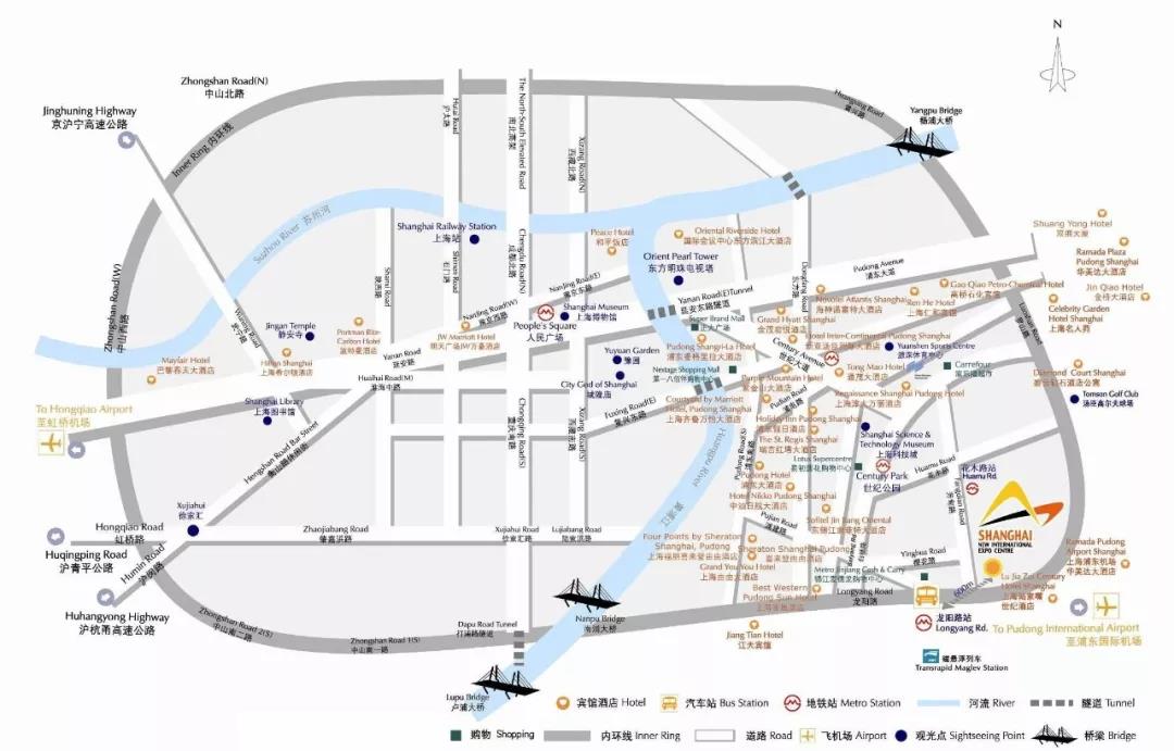 展館位于浦東兩條環(huán)線的交叉點,行車從市中心橫跨南浦大橋直達。
