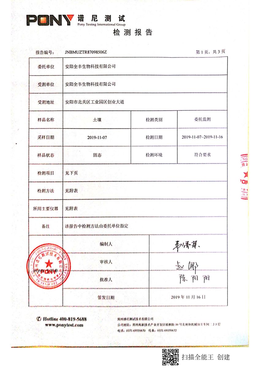安陽(yáng)全豐生物科技有限公司土壤自行監(jiān)測(cè)報(bào)告